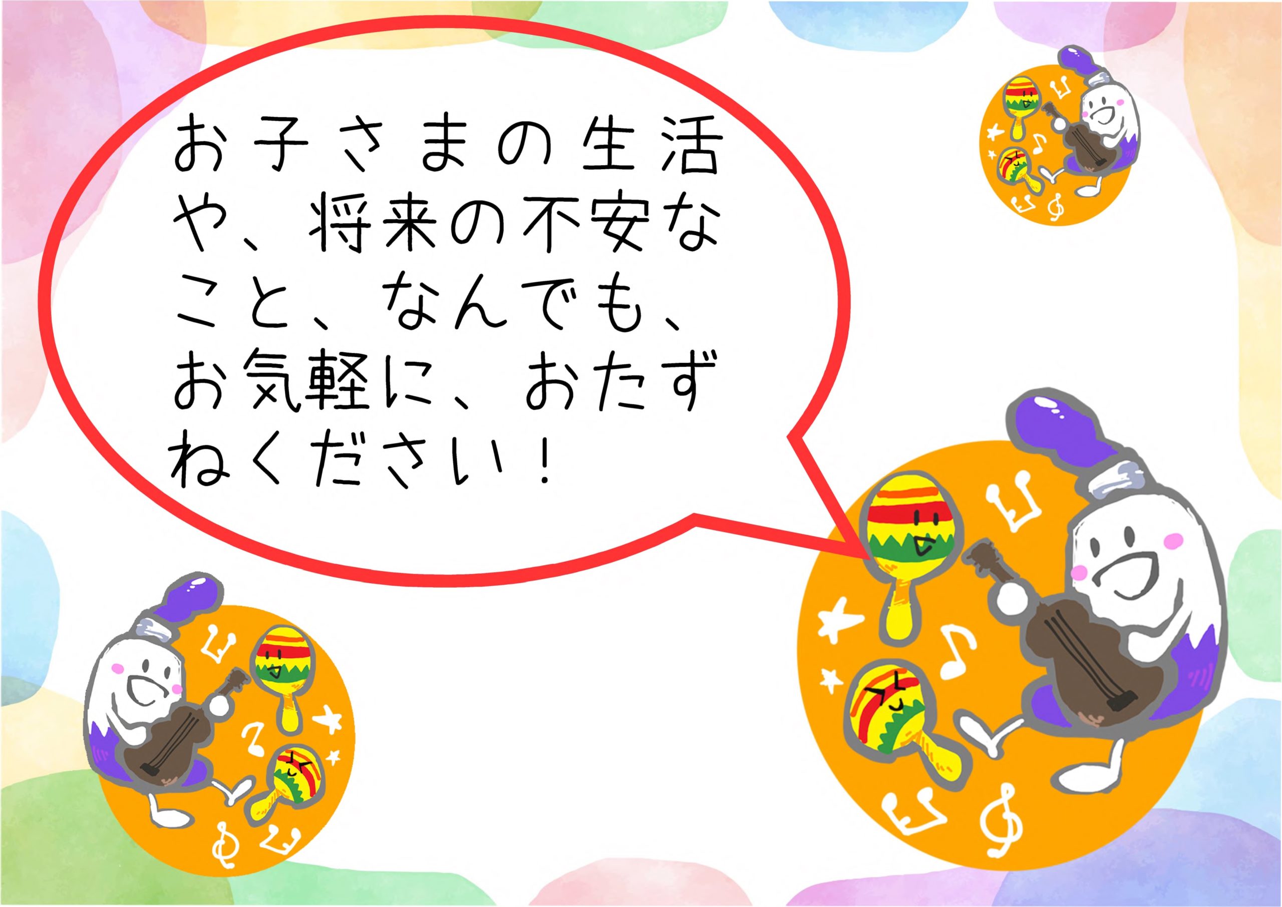 今回は「げんきっこくらぶじゃんぷ」の子どもたちが、春をイメージしたカラーでチラシデザインを手がけてくれました。