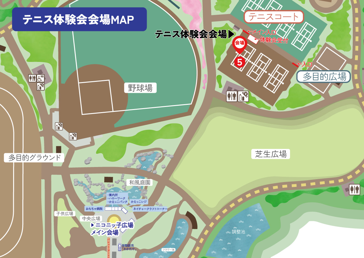 【場所】なまずの郷 中央広場・芝生広場・テニスコート